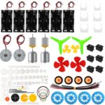 • Package Contents: 6pcs DC Motor; 6pcs Motor Mounting Bracket;6pcs 2 x AA Battery Holder; 6pcs Boat Rocker Switches, 24pcs Pastic Gears; 4pcs 4 Vanes Propeller; 2pcs 3 Vanes Propeller; Electronic Wire(25cm); Heat Shrink Tube,Sufficient Quantity to Meet your Daily DIY Science Projects